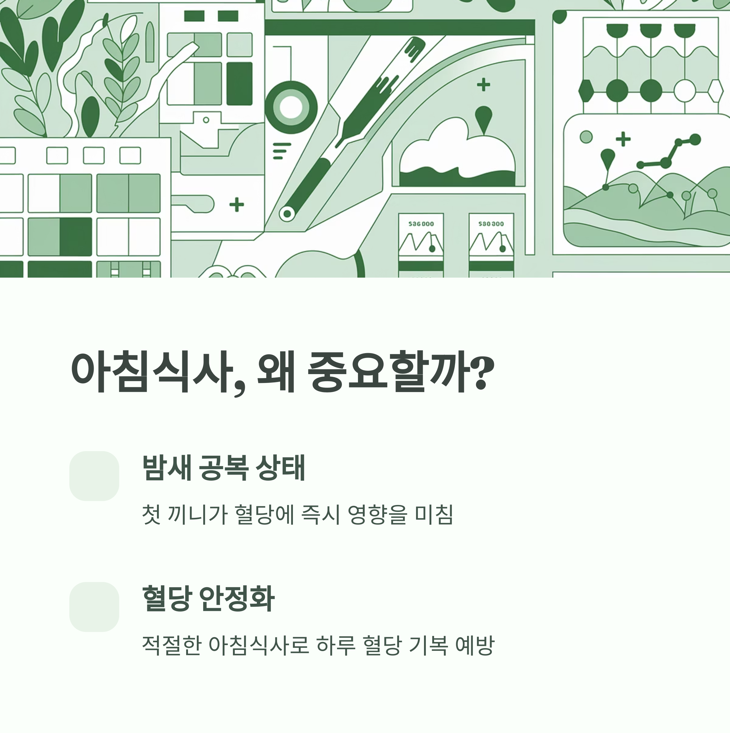 당뇨를 관리하는 사람에게 아침식사는 하루 중 가장 중요한 식사라고 할 수 있습니다. 공복 상태에서 먹는 첫 식사는 혈당에 즉각적인 영향을 미치며, 하루 전체 혈당 흐름에 큰 영향을 줄 수 있습니다. 그렇기 때문에 단순한 배 채움이 아닌, 혈당의 안정적인 시작을 위해 올바른 식단 구성이 필수적입니다. 특히, 아침식사를 통해 혈당이 급격하게 올라가는 것을 막는 것이 장기적인 당뇨 관리의 핵심이라 할 수 있습니다.