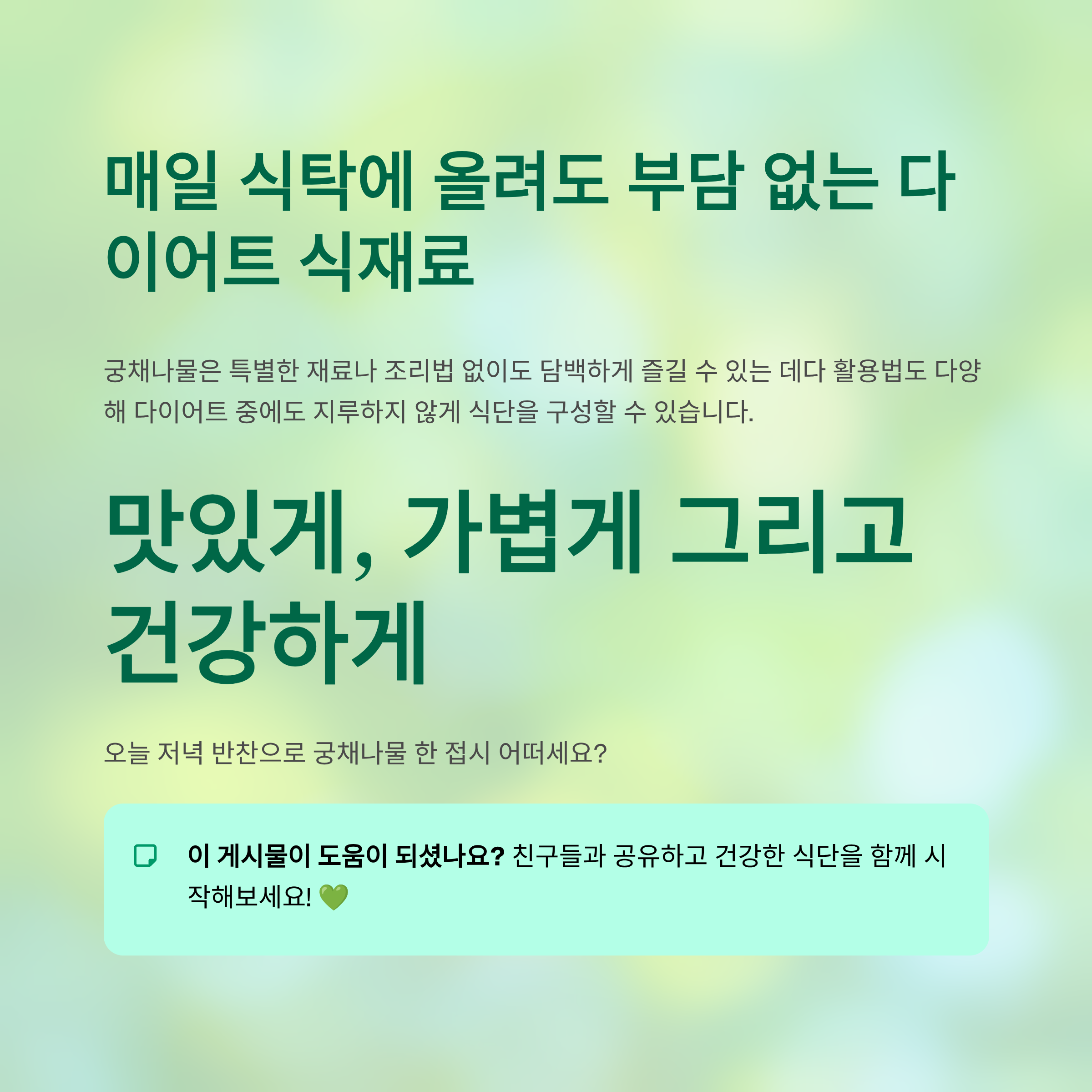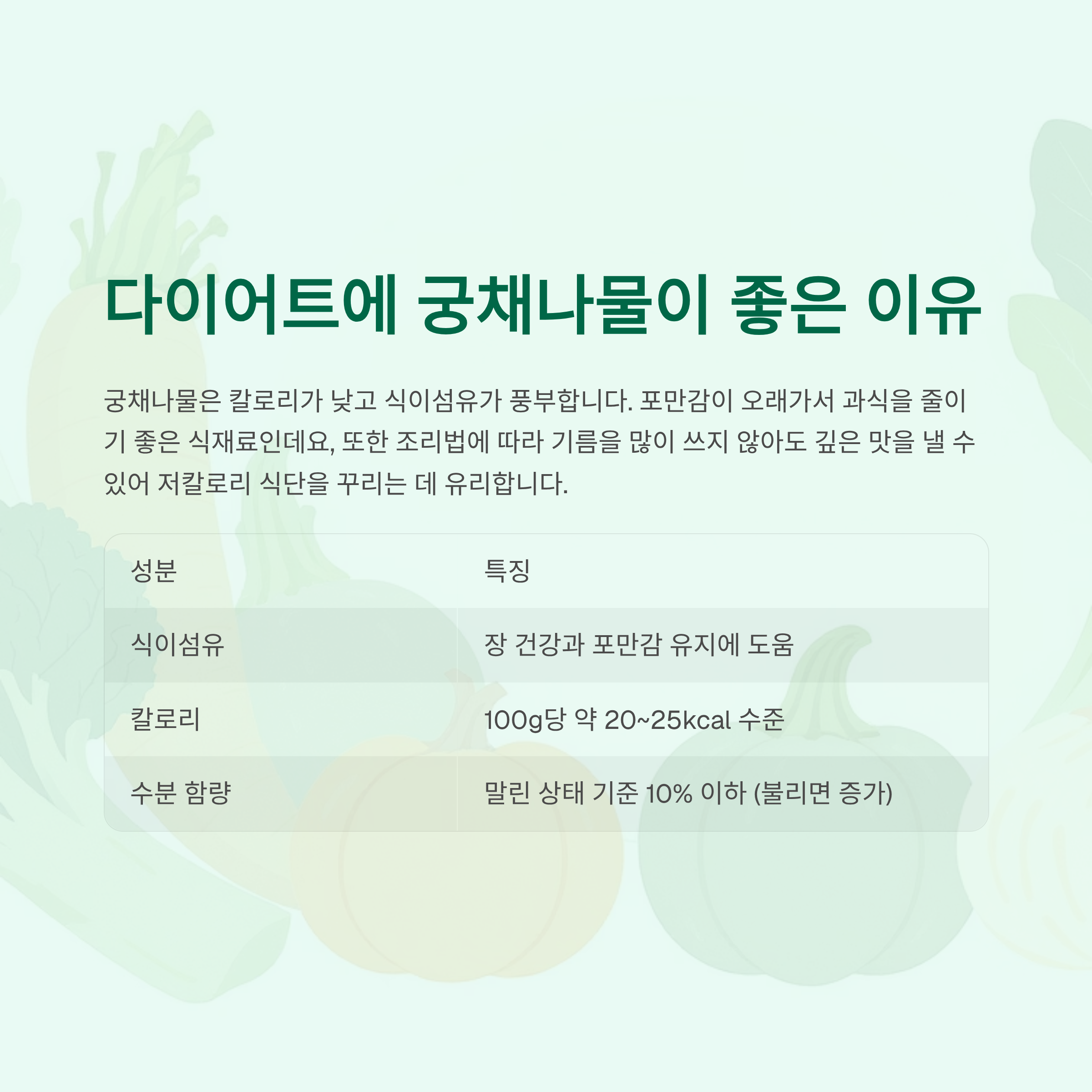 결론: 궁채나물, 매일 식탁에 올려도 부담 없는 다이어트 식재료