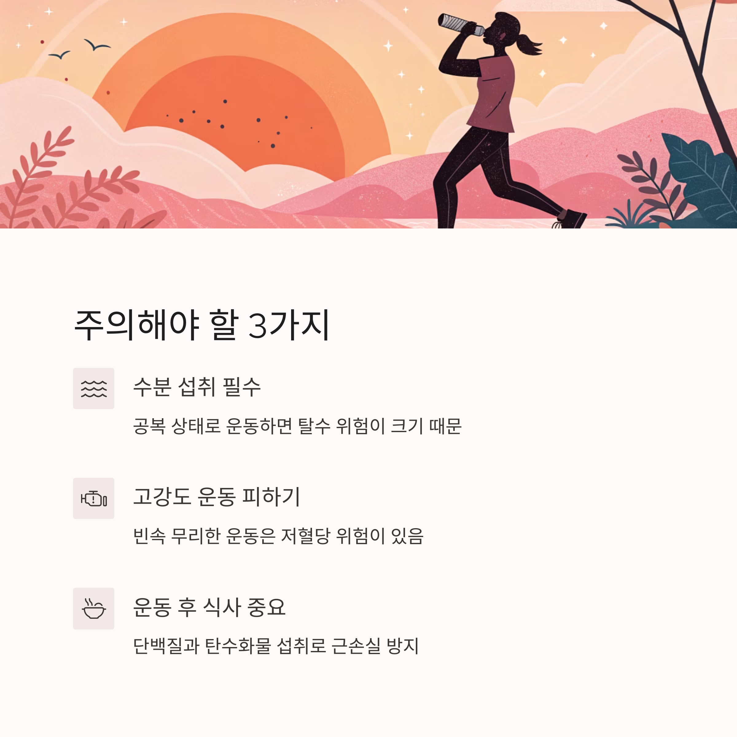 둘째, 빈속 무리한 고강도 운동은 저혈당 위험이 있으므로 피해야 합니다.
