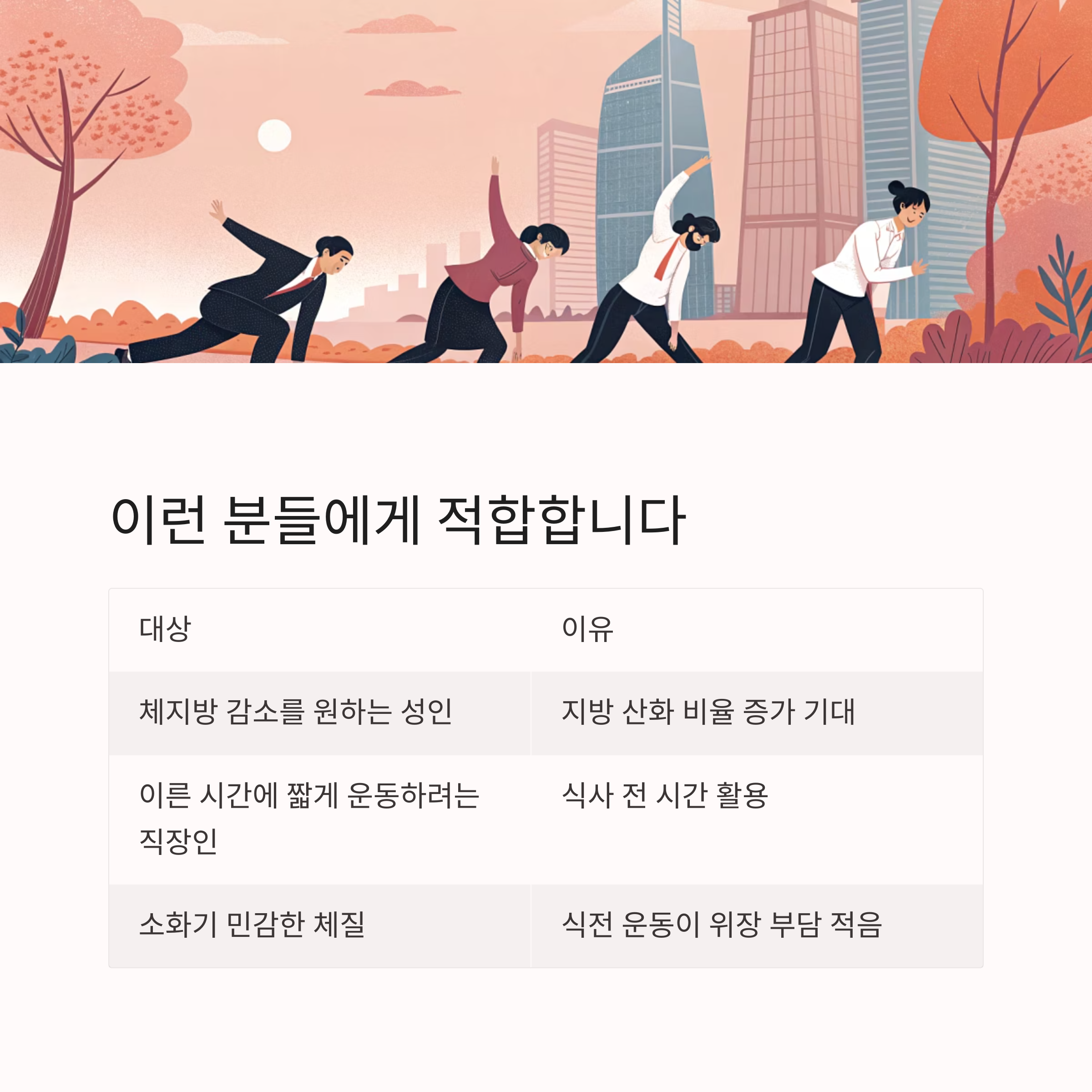 | 소화기 민감한 체질 | 식전 운동이 위장 부담 적음 |