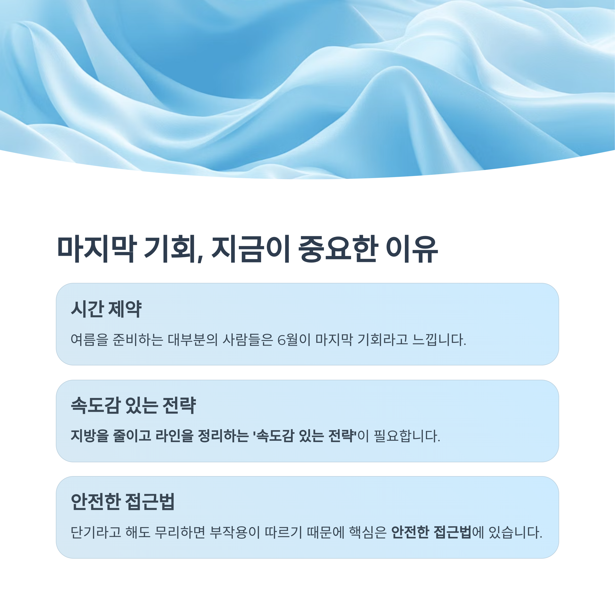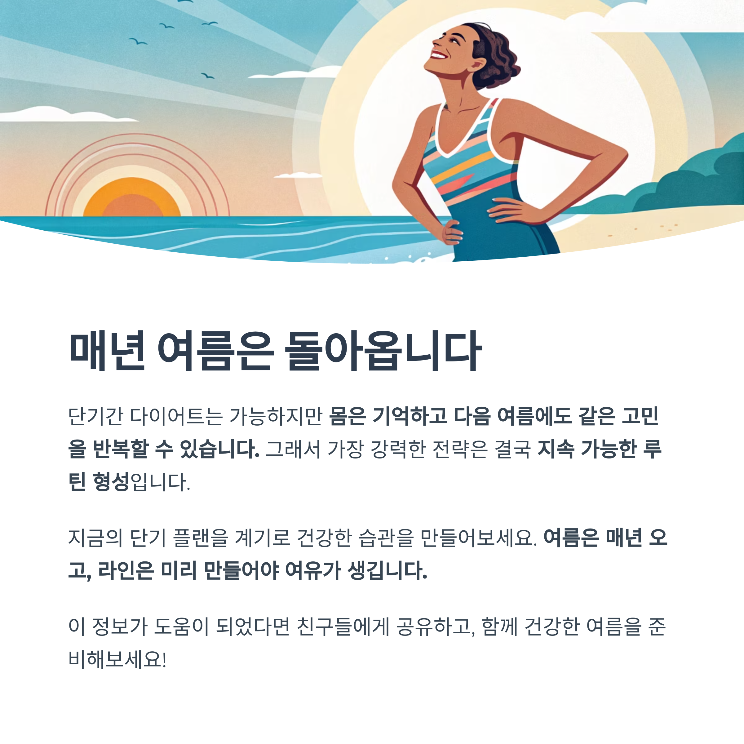 단기간 다이어트는 가능하지만 몸은 기억하고 다음 여름에도 같은 고민을 반복할 수 있습니다
