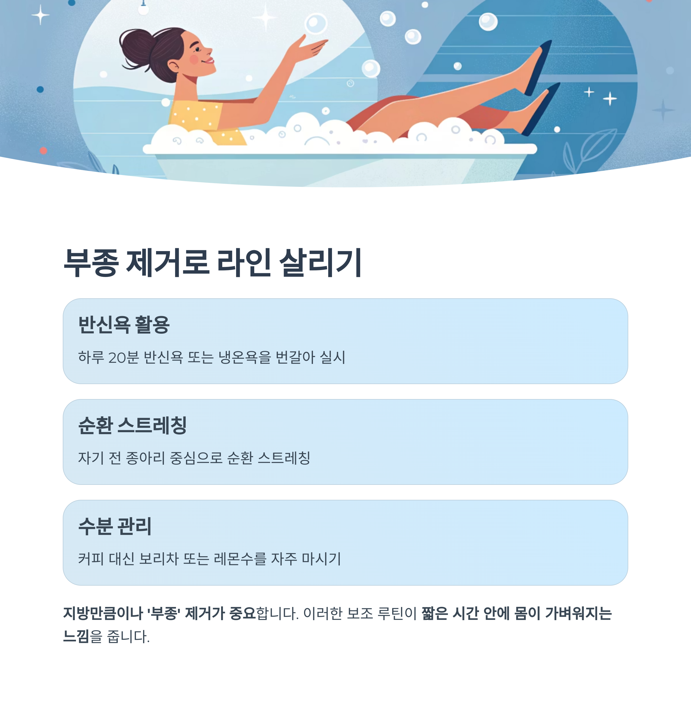 | 생활 습관 | 수분, 수면, 스트레스 관리 | 노폐물 배출 촉진, 호르몬 밸런스 유지 |