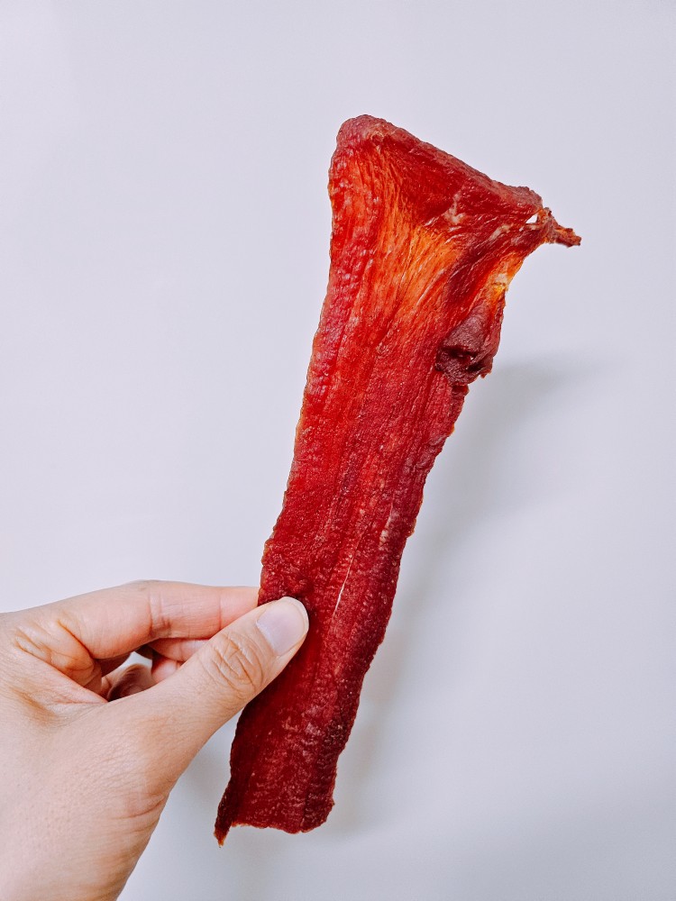 저는 어렸을 때 어머니께서 손수 육포를 만드시는 것을 보며 자라서 이런 유형의 육포에 더 관심이 많았습니다. 처음에는 너무 짤 경우 다이어트에 방해가 될까봐 2팩만 선택했지만, 적당한 짠맛과 맛있는 풍미, 부드러운 식감 덕분에 매우 추천할 만한 제품이었습니다. 게다가 올리브유가 건강에 좋은 것은 모두 아시죠? 올리브유로 가공되어 건강하면서도 맛있는 느낌이 들었습니다.