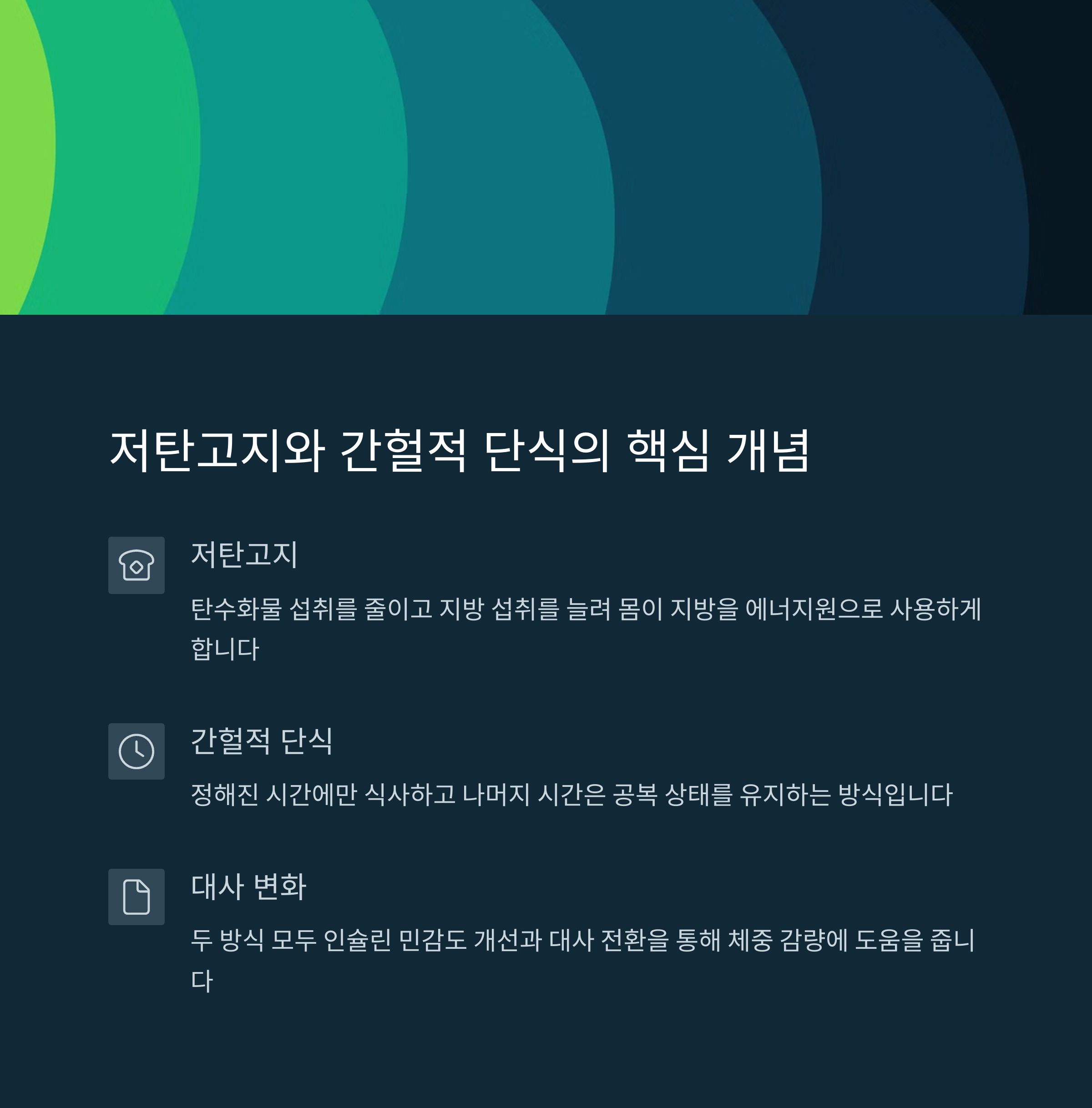 "식사 시간은 간헐적 단식, 식사 내용은 저탄고지"라는 말처럼