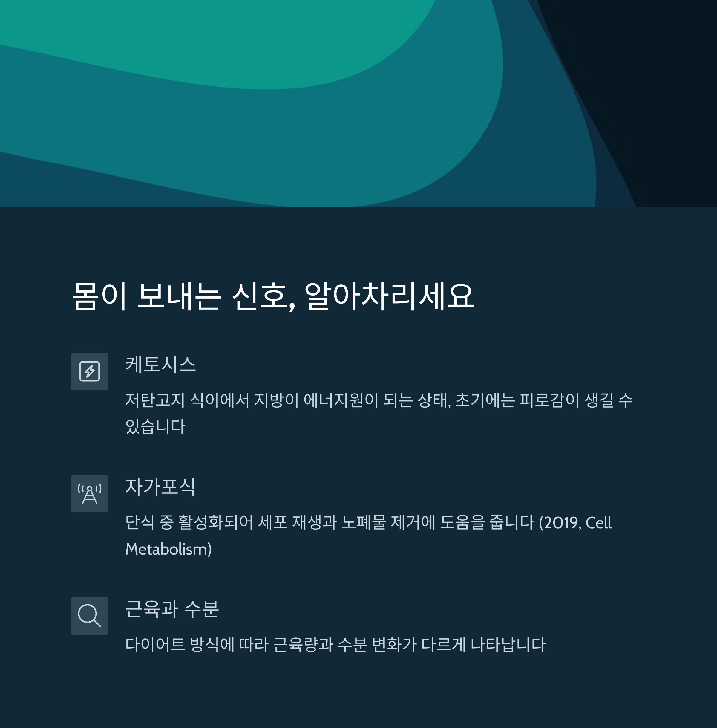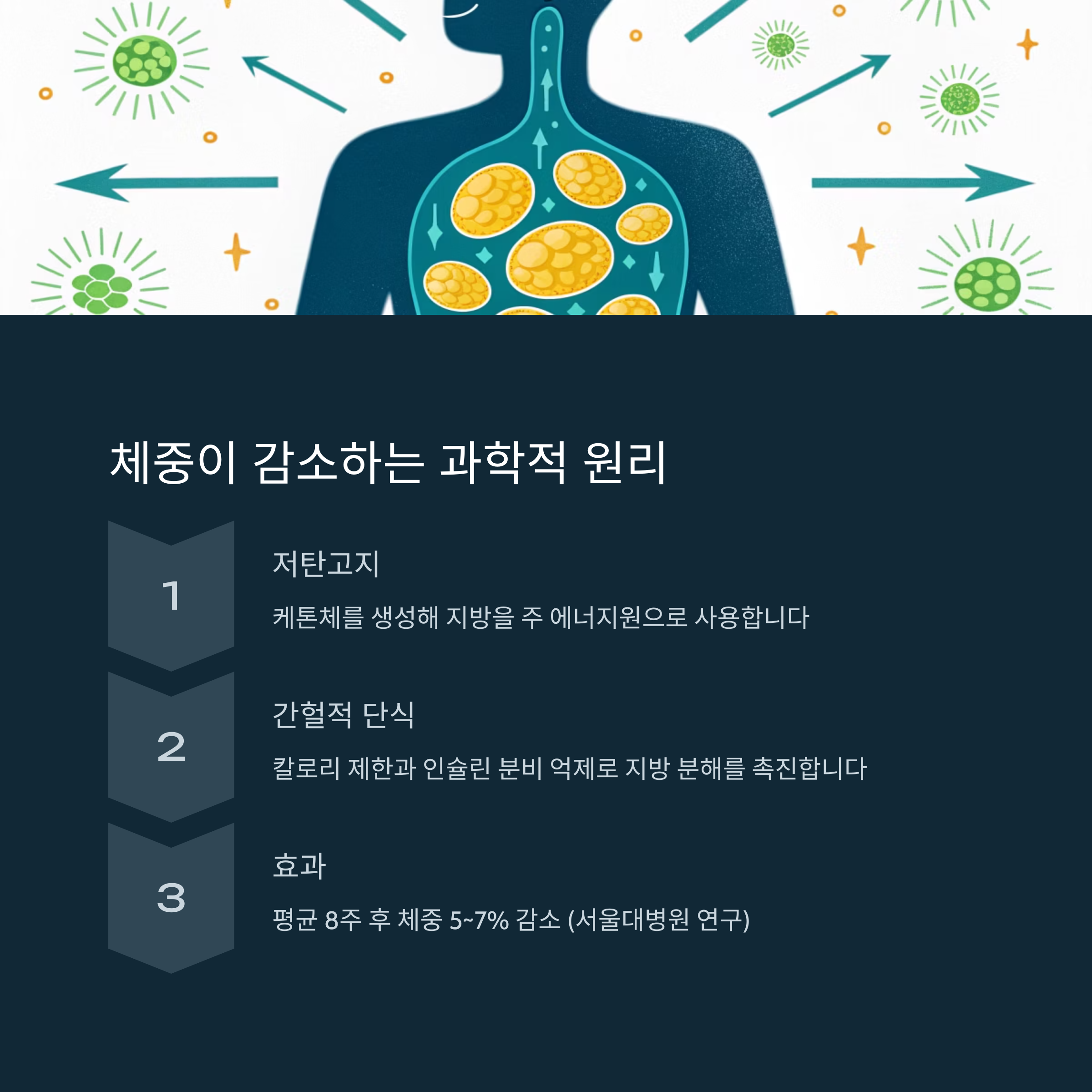 몸이 케토시스로 전환되면 지방이 주 연료로 쓰이면서 체중 감량이 시작됩니다