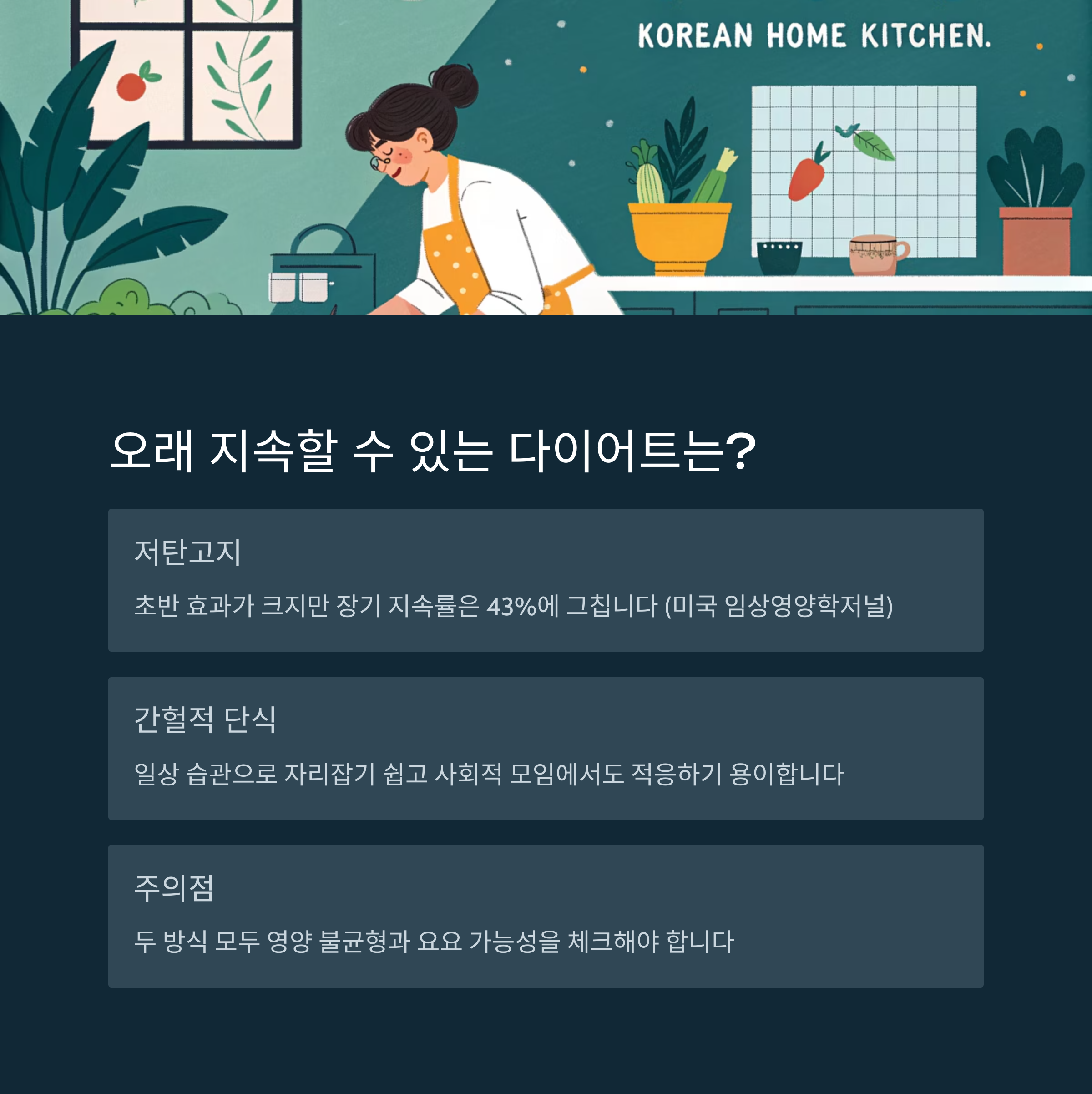 "장기적으로 유지할 수 있는 습관으로 자리 잡는 것이 진짜 성공 다이어트의 핵심입니다"
