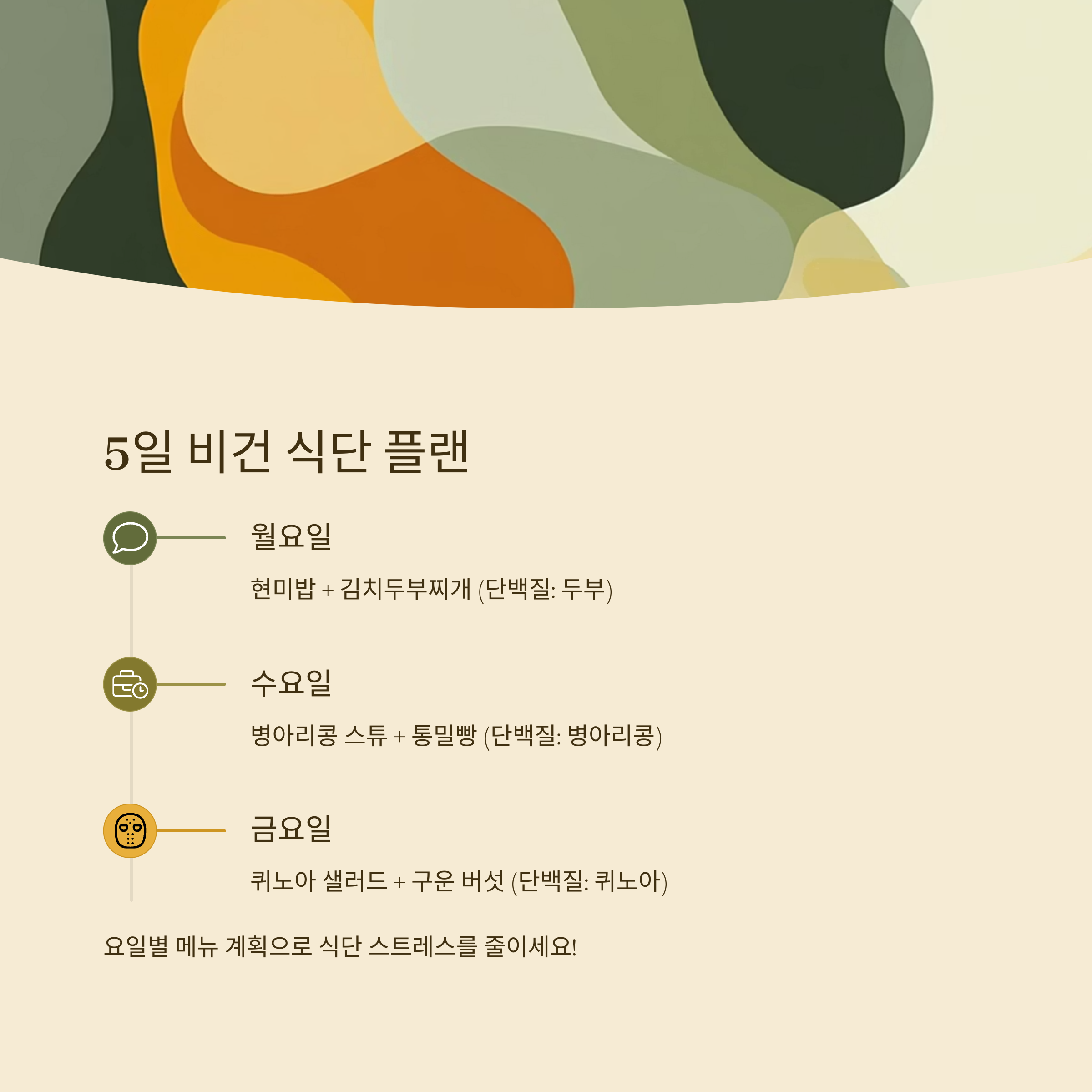 요일별로 메뉴를 미리 계획해 두면 식단 스트레스를 줄이고 지속 가능성이 높아집니다.