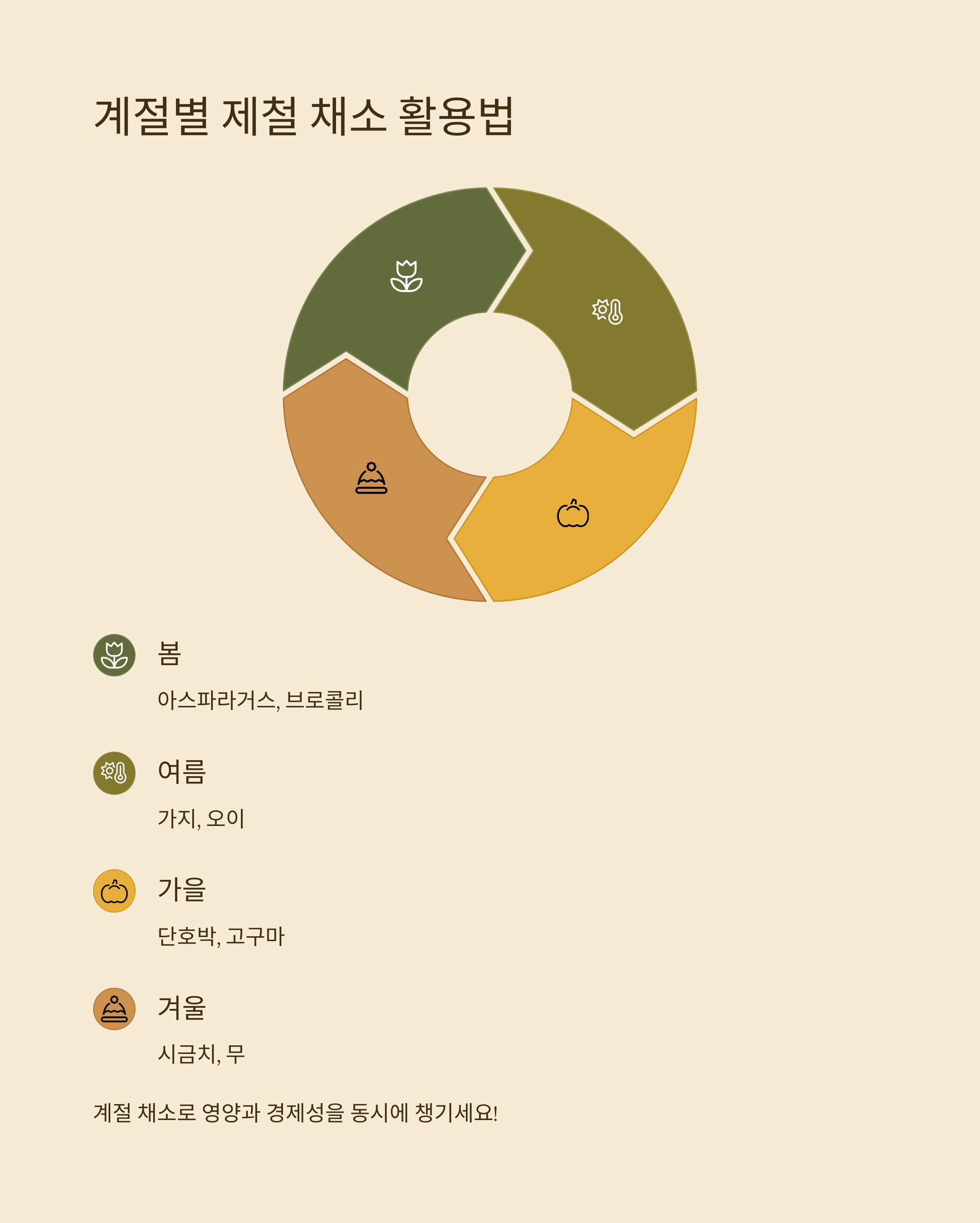 봄에는 아스파라거스와 브로콜리, 여름엔 가지와 오이, 가을엔 단호박과 고구마, 겨울엔 시금치와 무처럼 계절에 맞는 채소를 활용하면 영양은 물론 가격 부담도 줄일 수 있습니다.
