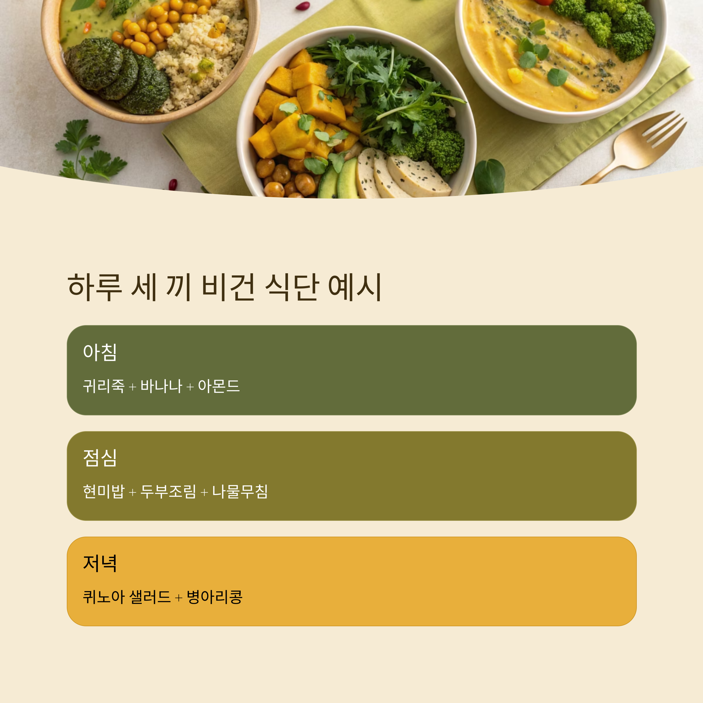 하루 세끼 비건 식단 예시
