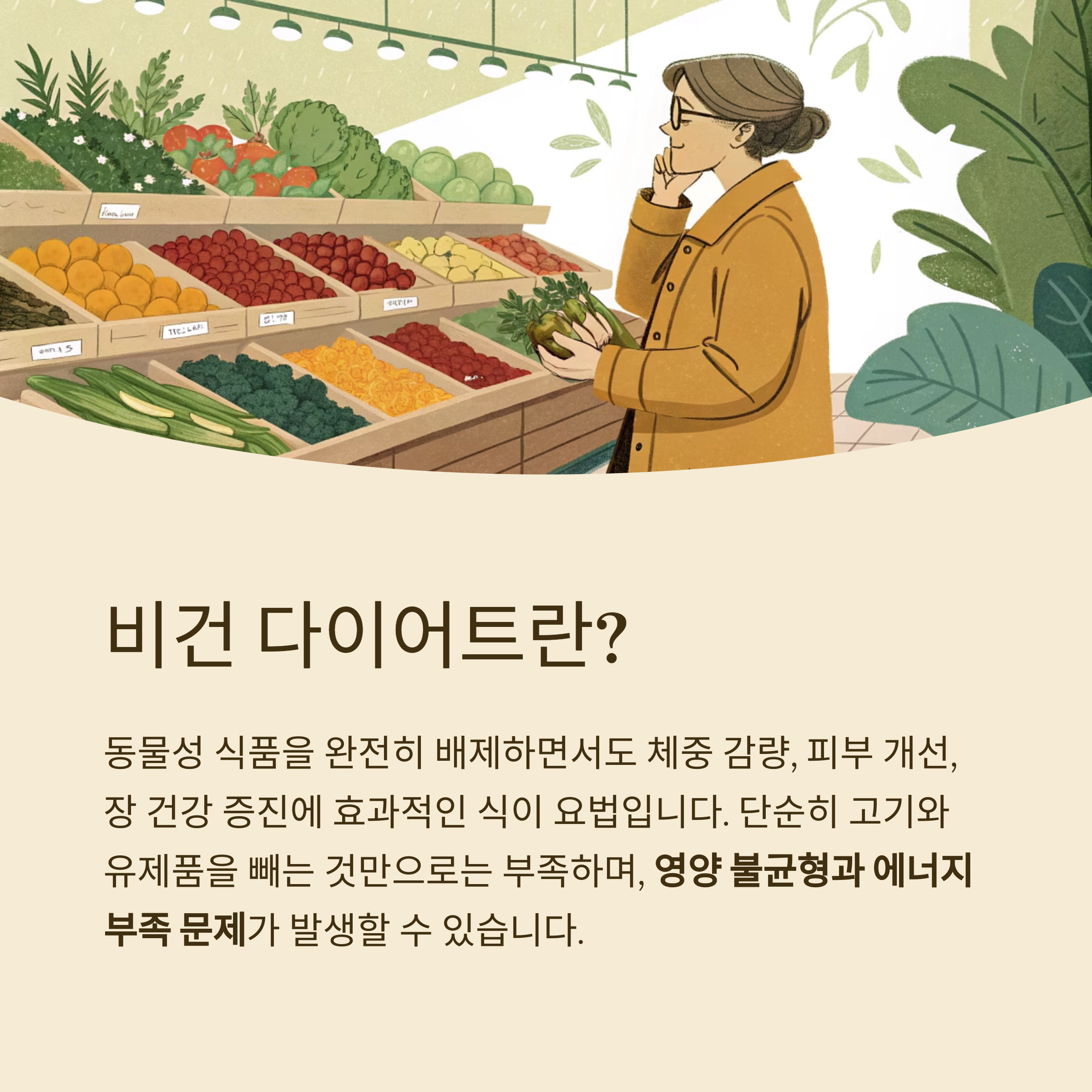 하지만 단순히 고기와 유제품을 빼는 것만으로는 부족하며, 영양 불균형과 에너지 부족 문제가 발생할 수 있습니다.