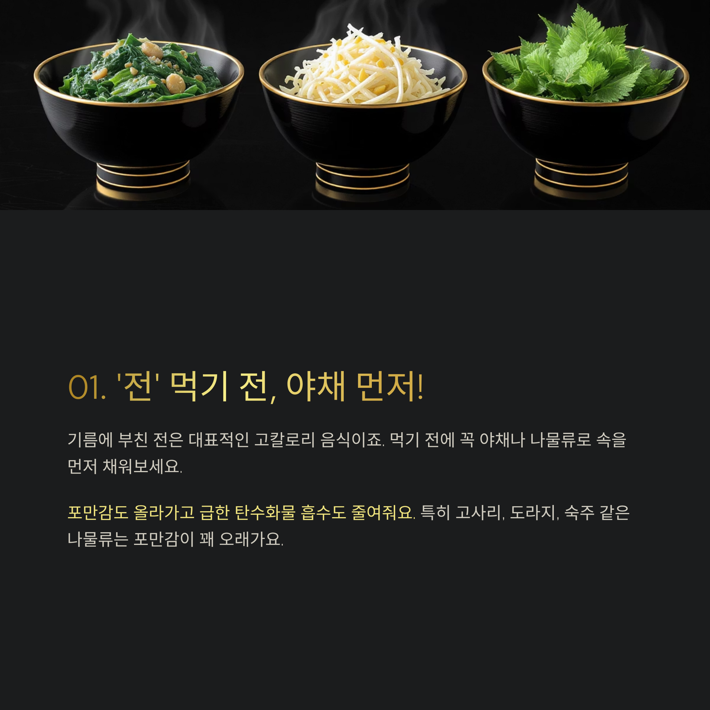 포만감도 올라가고 급한 탄수화물 흡수도 줄여줘요. 특히 고사리, 도라지, 숙주 같은 나물류는 포만감이 꽤 오래가요.