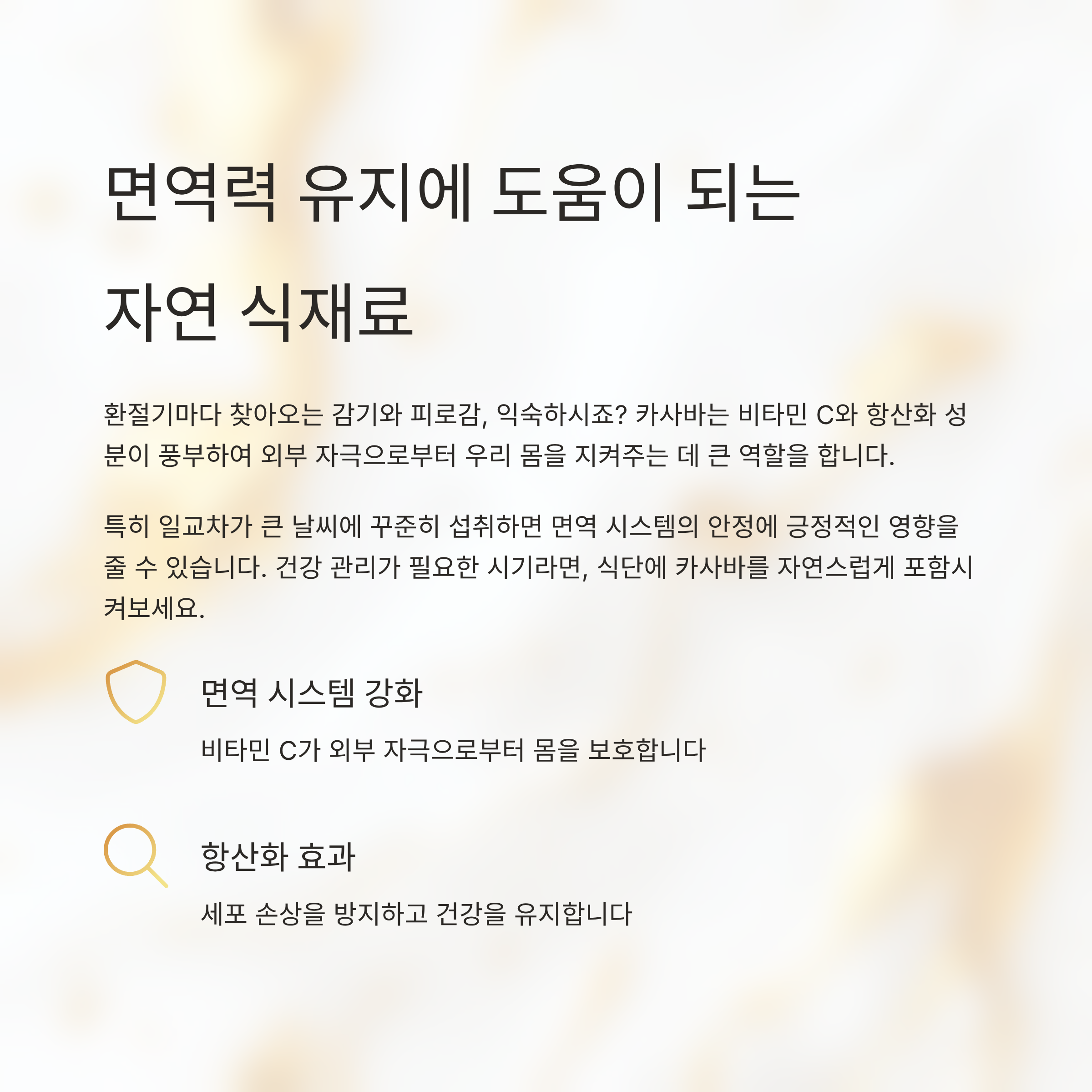 특히 일교차가 큰 날씨에 꾸준히 섭취하면 면역 시스템의 안정에 긍정적인 영향을 줄 수 있습니다.