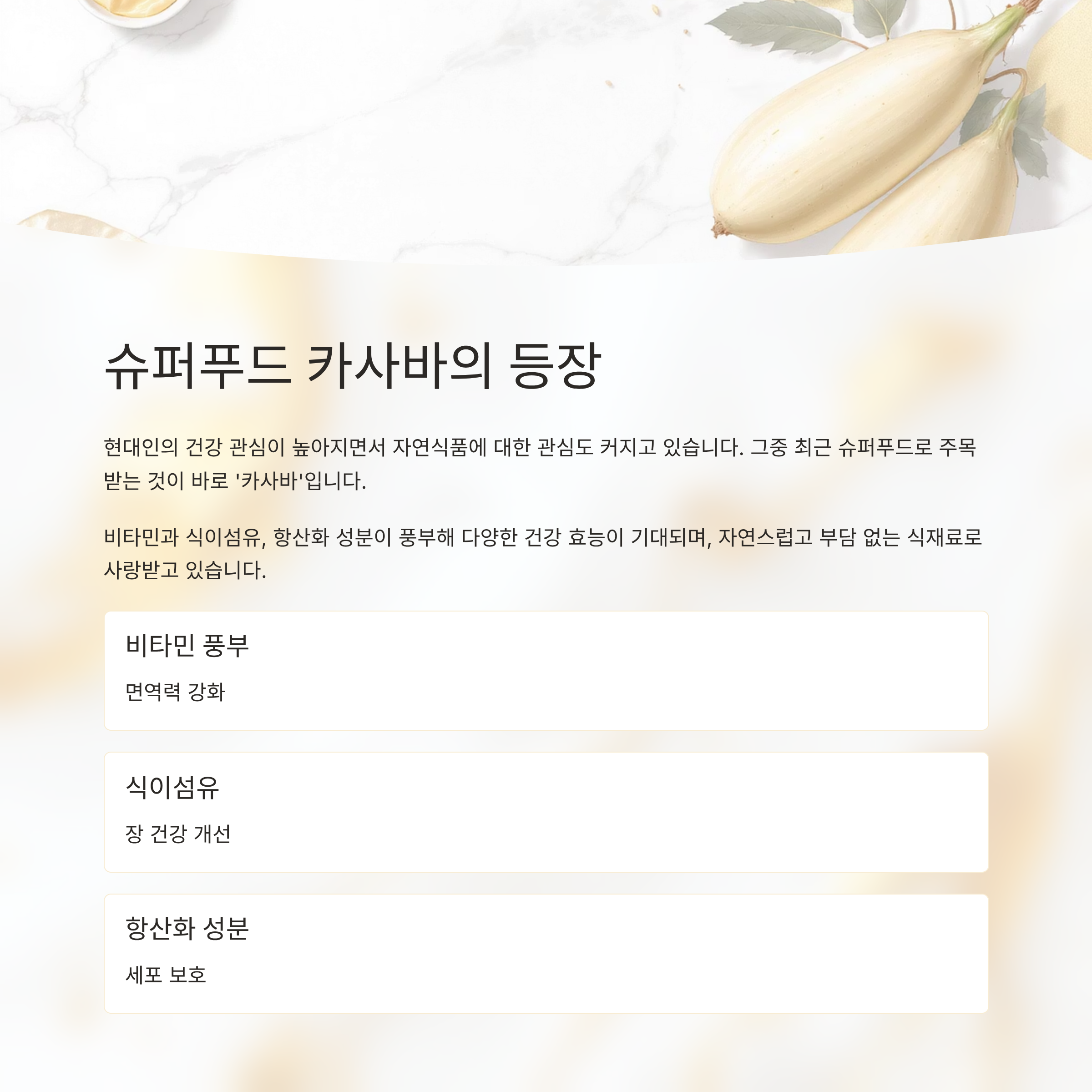 건강 관리가 필요한 시기라면, 식단에 카사바를 자연스럽게 포함시켜보세요.