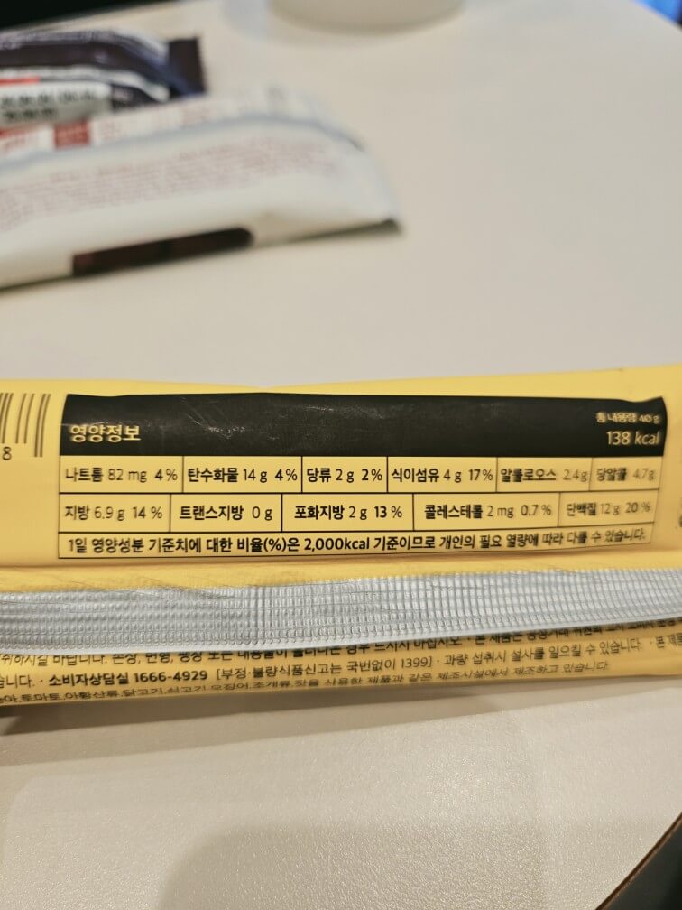 닥터유 프로 단백질바도 맛도 포만감도 훌륭하지만 이 세 가지 프로틴바 중 칼로리가 제일 높아서 저는 한 번에 먹지는 않고 삼등분을 해서 먹고 있습니다. 삼등분을 해서 먹다 보니 조금 불편한 점이 있습니다.